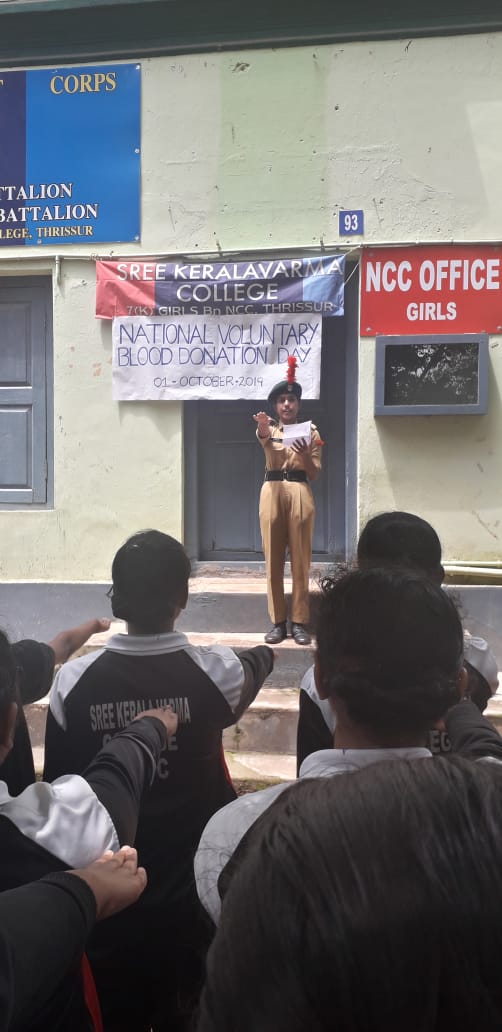 - NCC Girls Bn of Sree Kerala Varma College observes National Voluntary Blood Donation Day on 1 October 2019.