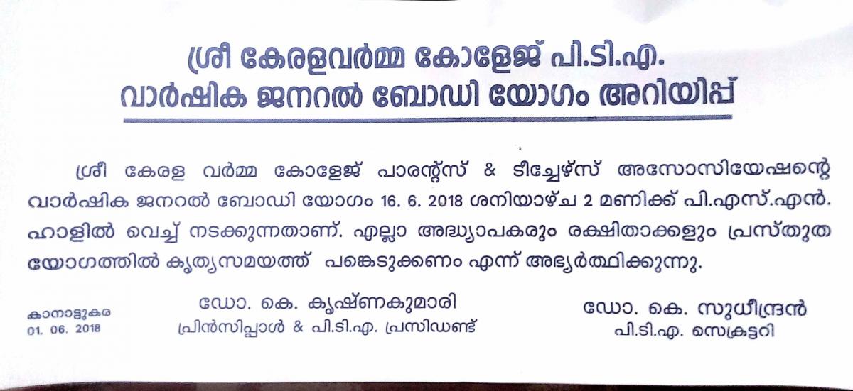 - Sree Kerala Varma College Mathematics Alumni Association - EPSILON - General Body meeting held on 11 March 2018.