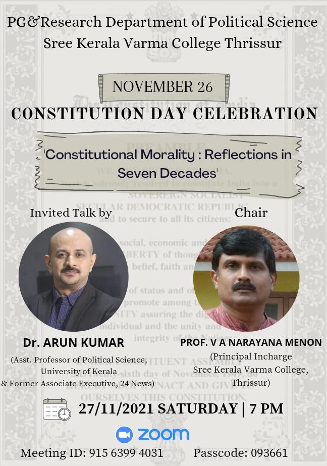 - Department of Political Sciences organizes Constitution Day Celebration on 27.11.2021 and Samakaalikam, Panel discussion on 28.11.2011.