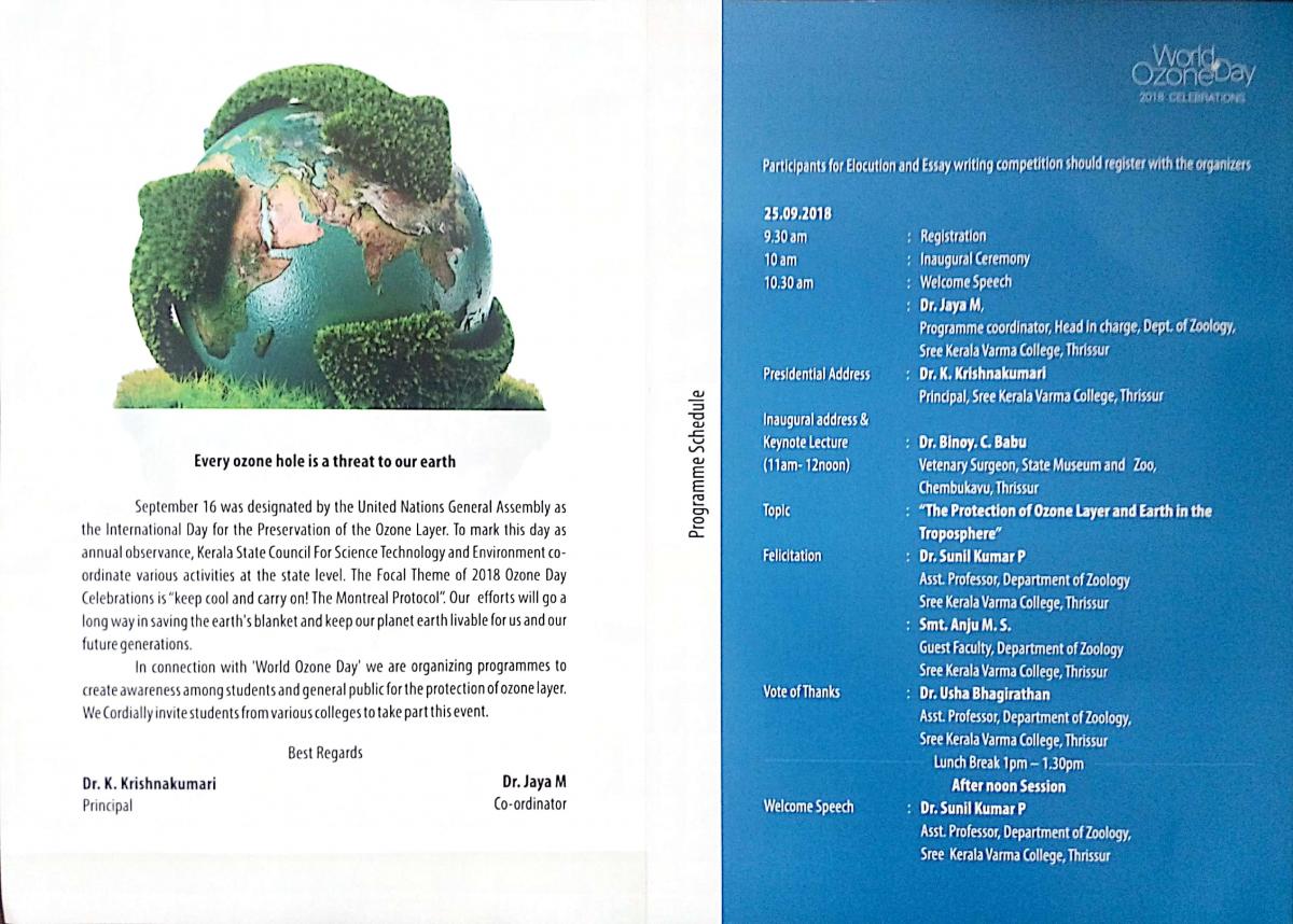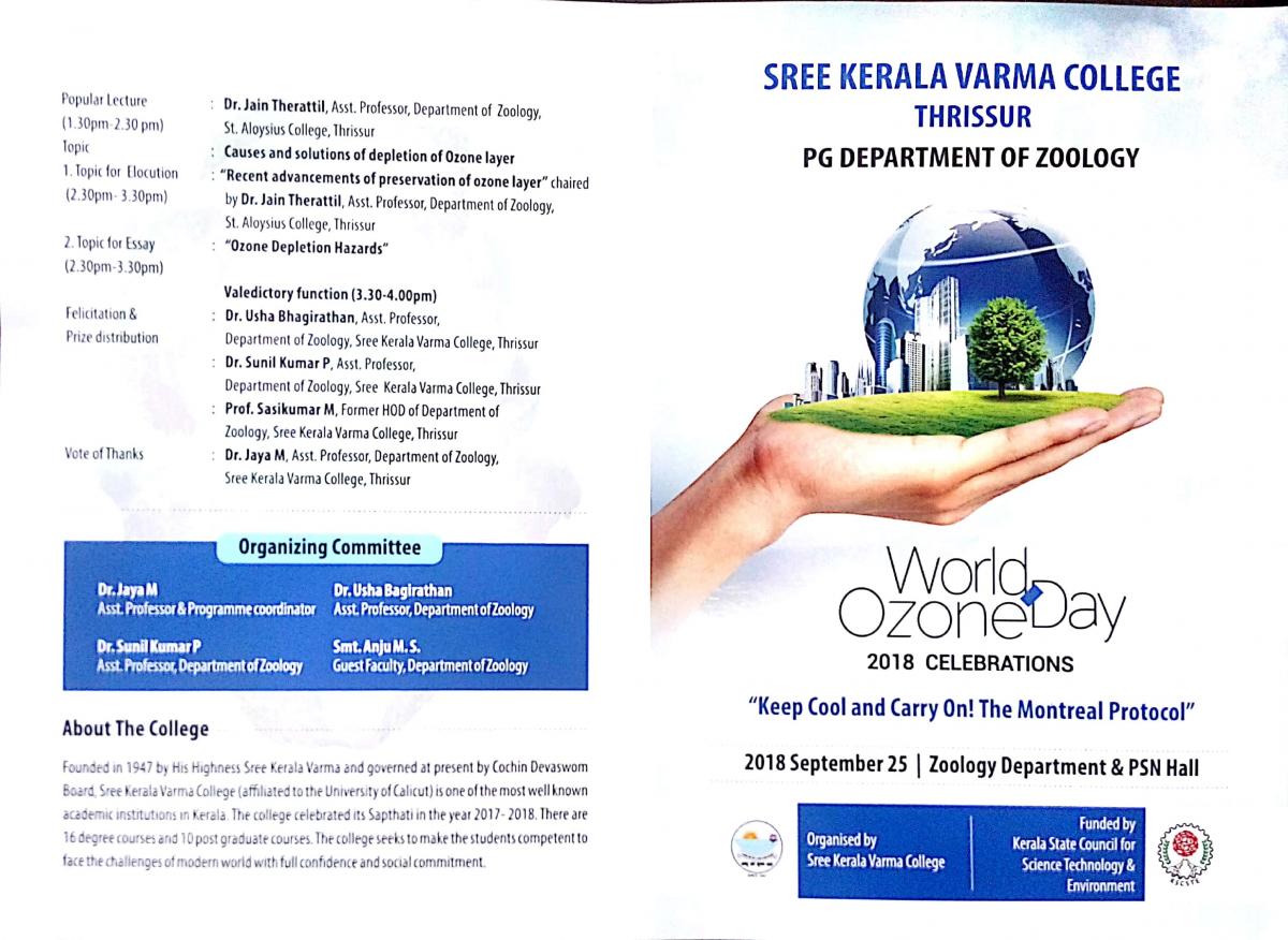 - PG Department of Zoology organizes World Ozone Day Celebration on 25 September 2018. See brochure page 1, page 2.
